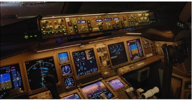 MCP, EFIS, CDU/FMS, COMs, NAVs, ADF, and ATC